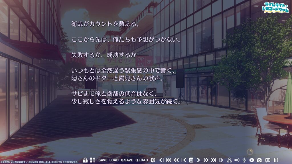 ここまでシステムの話ばかりに触れてきたが、テキストADVの主役であるストーリーでは何が描かれたのだろうか?主題である音楽は「ライムライト・レモネードジャム 」にとってどういった位置づけの存在なのだろうか?
