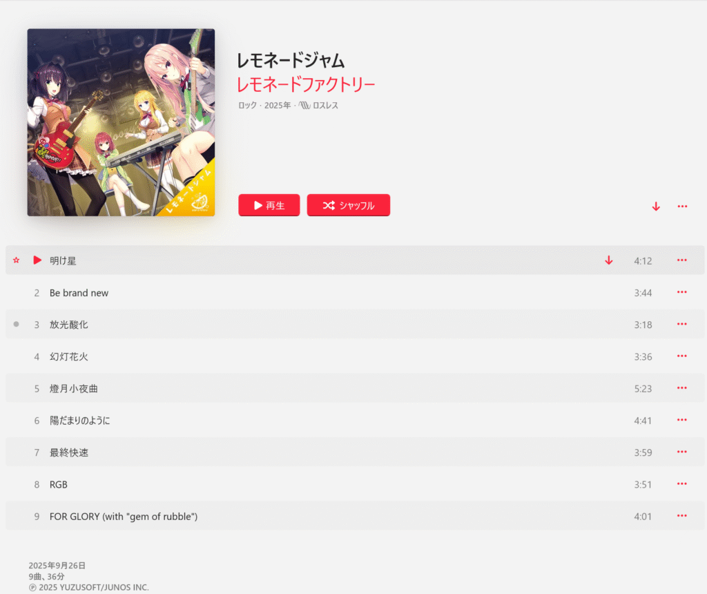 これらを収録したアルバムはサブスクで配信されており、全9曲36分という大規模なものだ。ゲームをプレイしていない時間もアルバムを聴くことで作品世界に触れ続けることができるという、「アイマス」や「ぼっち・ざ・ろっく」と似た仕組みが実現した。